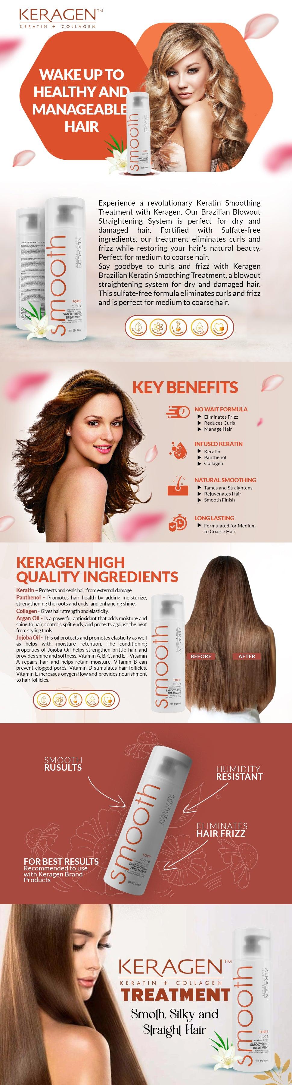 Discover the secret behind salon-perfect hair with the KERAGEN Brazilian Keratin Smoothing Treatment. This professional-grade formulation is specifically engineered to transform even the most challenging hair types - turning frizzy, unmanageable curls into effortlessly smooth, shiny locks that maintain their perfection for weeks.